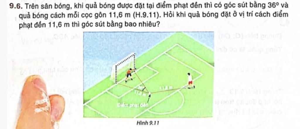 Vậy khi quả bóng đặt ở vị trí cách điểm phạt đến `11,6 m` thì góc sút bằng `18^°`.