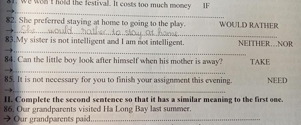 `86.` Our grandparnts paid a visit to Ha Long Bay last summer. (visit `=` pay a visit)