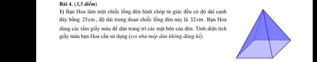 Diện tích giấy màu bạn Hoa cần sử dụng là: