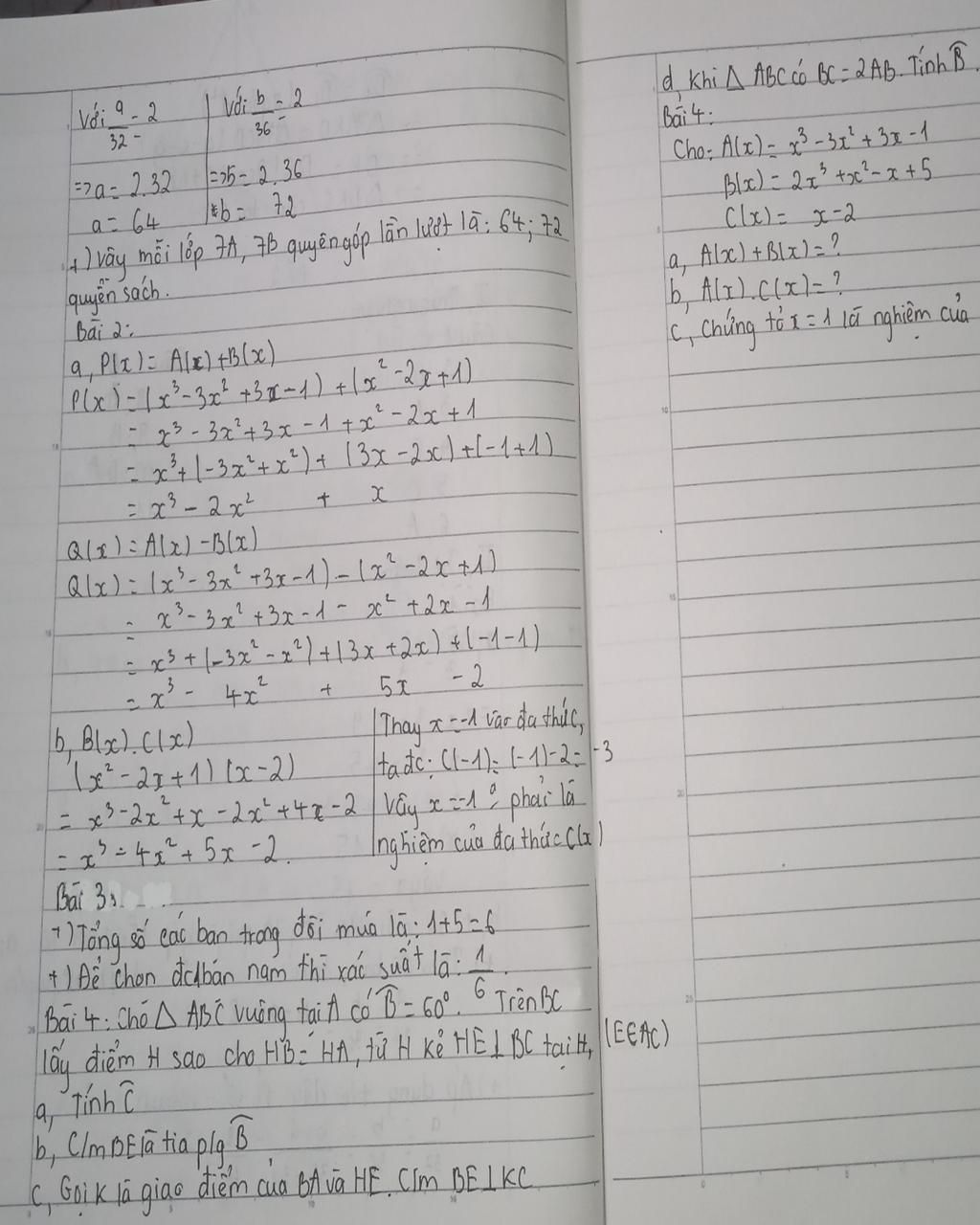 `a) A(x) + B(x) = (x^3 - 3x^2 + 3x - 1) + (2x^3 + x^2 - x+ 5)`