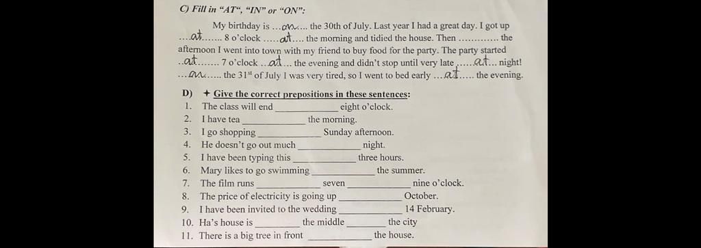 8. in ( in + month: in January, in February)