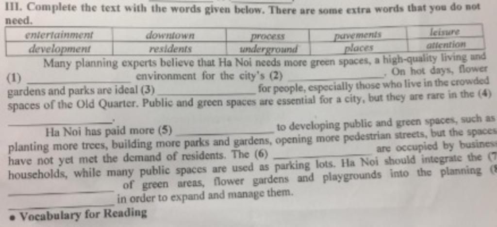for the city's development: cho sự phát triển của thành phố