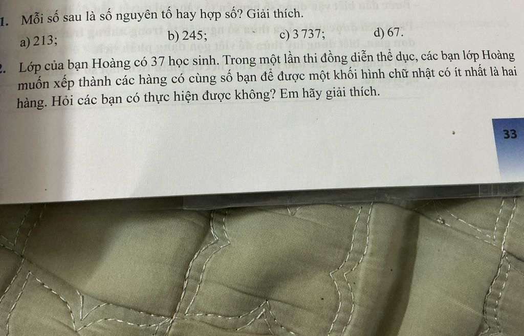 - Không thể xếp thành HCN với ít nhất 2 hàng vì 37 không chia hết cho STN nào khác ngoài 1 và 37.