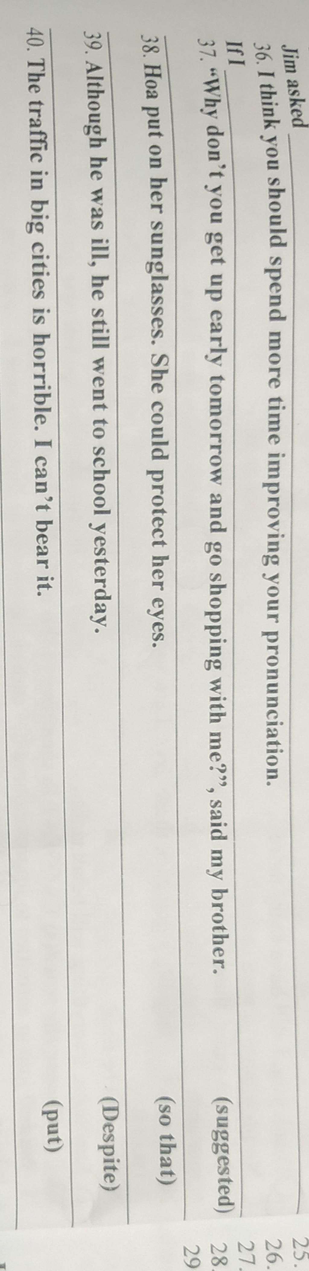 `37` My brother suggested me that I (should) get up early the following day and go shopping with him.