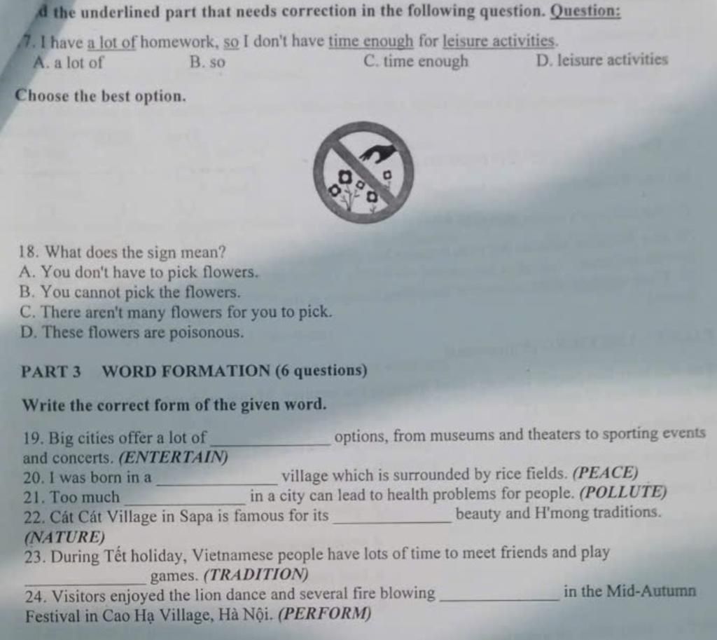 18. B. You cannot pick the flowers: Bạn không thể hái những bông hoa.