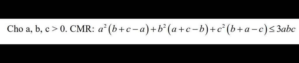 `<=> 3abc >= a^2 ( b + c - a ) + b^2 ( a + c - b ) + c^2 ( b + a - c )`