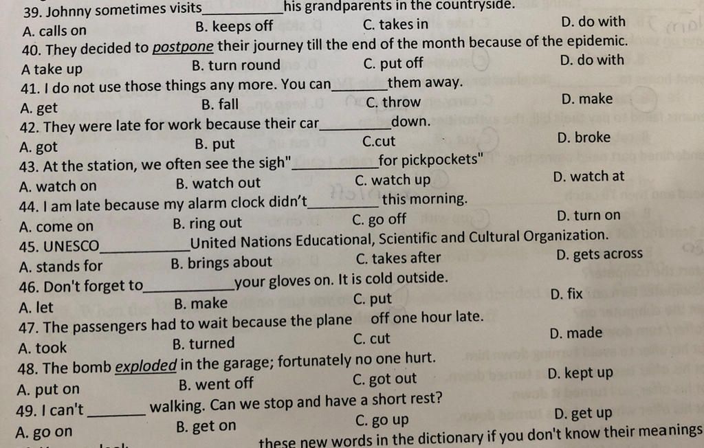 `-` Put off ( v.phr ) `=` Postpone ( v ) : trì hoãn