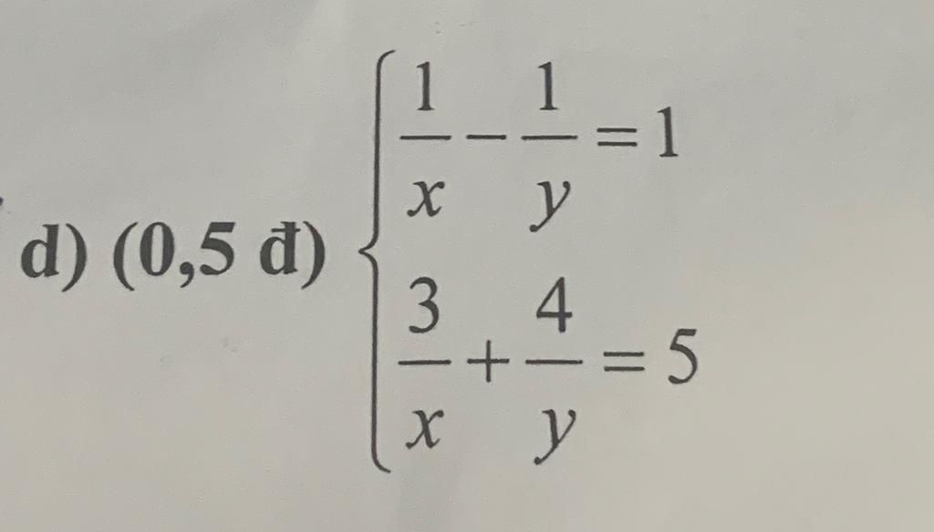 `{(1/x - 1/y = 1),(3/x + 4/y = 5):} (x ; y \ne 0) <=> {(4/x - 4/y = 4),(3/x + 4/y = 5):}`