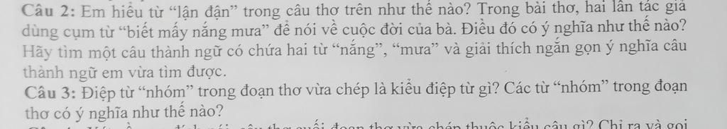 Cho câu thơ sau: "Lận đận đời bà biết mấy nắng mưa"