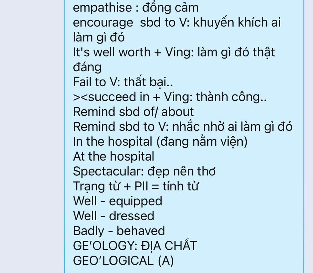 *GE'OLOGY: ĐỊA CHẤT: Geology is the study of the Earth's physical structure and substance.