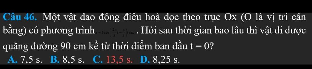 Từ thời điểm `t=0` đến khi vật đi được `S=90 (cm):`