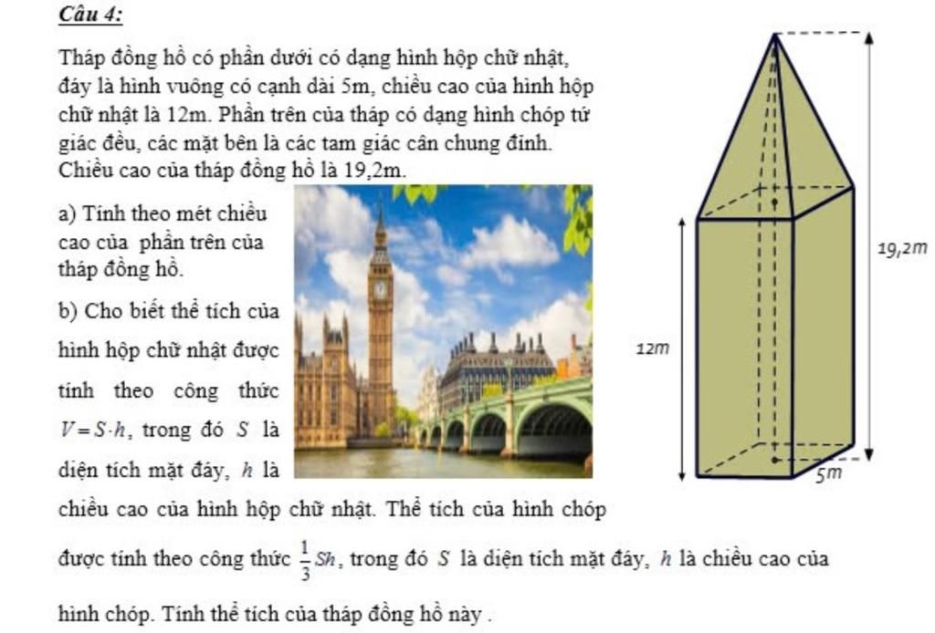 Thể tích của tháp đồng hồ đó là: