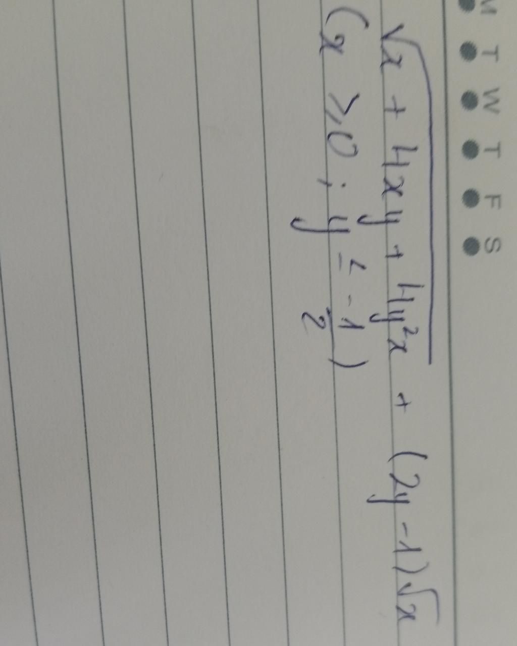 `\sqrt(x + 4xy + 4y^2x ) + (2y - 1)\sqrt(x) (x >= 0; y <= -1/2)`