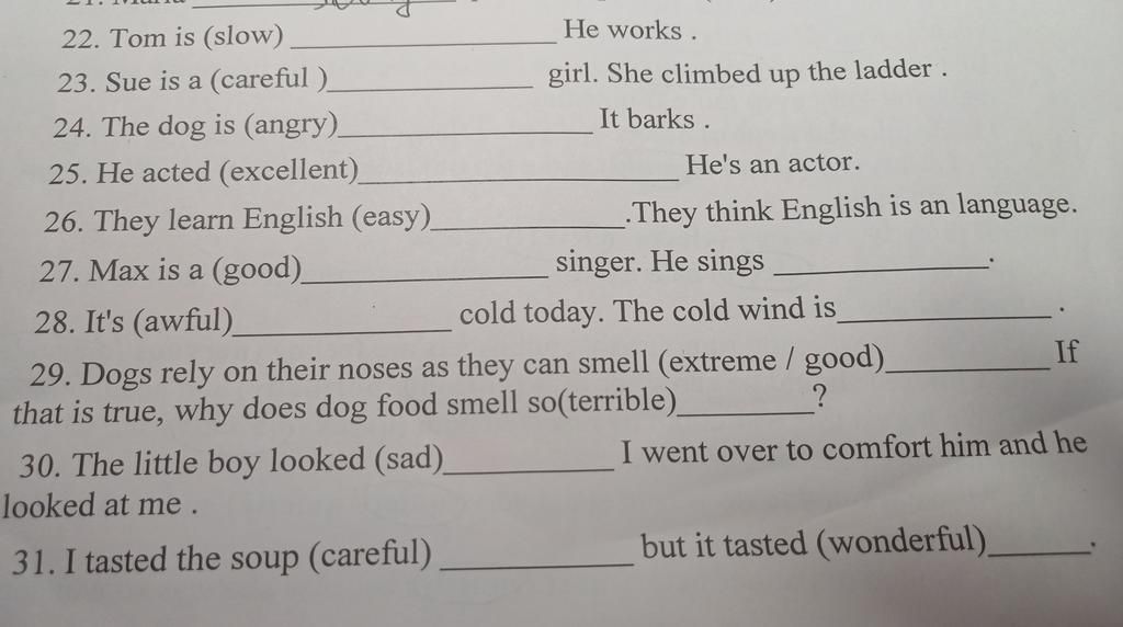 Đề bài là : Fill in the blanks suitable adj or adv ạ , chỉ cần ghi đáp án th ạ