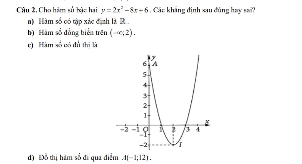 Do `a=2 > 0 ` nên hàm số đồng biến trên khoảng `(2;+ oo)`