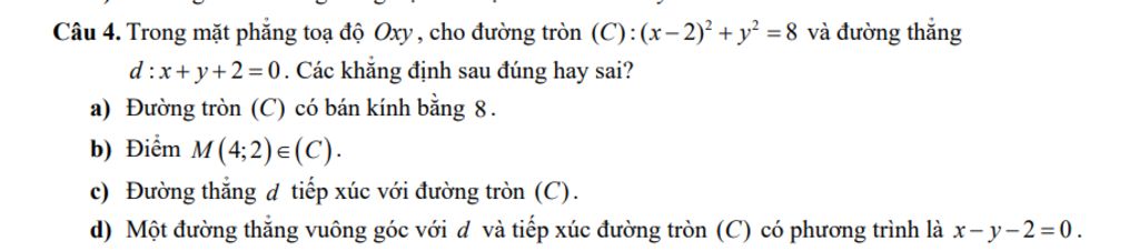 d:x+y+2=0.Các khẳng định sau đúng hay sai?