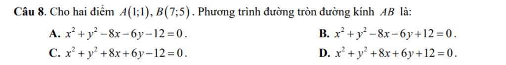 `<=> x^2 + y^2 - 8x - 6y + 12 =0`
