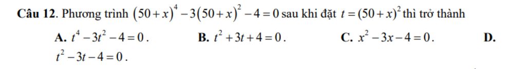 Đặt `t=(50+x)^2`, ta có phương trình mới :