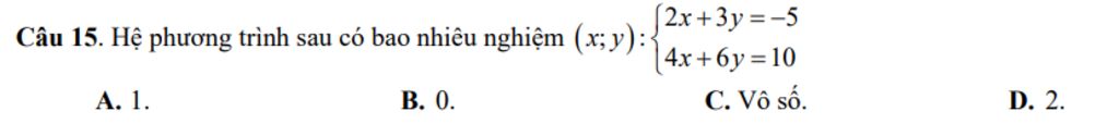 $\begin{cases} 2x+3y=-5\\4x+6y=10\\ \end{cases}$