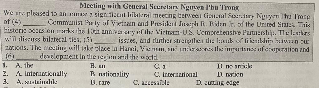 - Dựa vào nghĩa -> Đáp án A hợp lý nhất