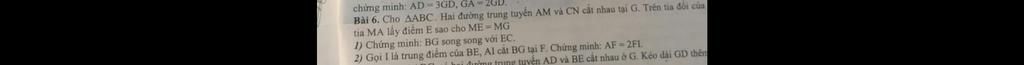 2.Ta có: $AM, CN $ là trung tuyến $\Delta ABC, AM\cap CN=G$