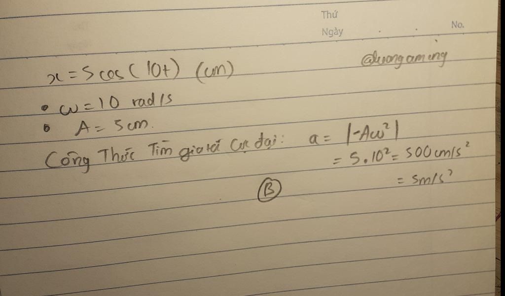 `|a_(max)|=A.omega^2=0,05.10^2=5 (m//s^2)`