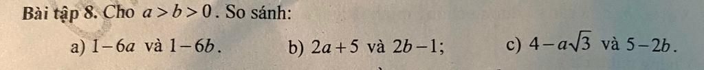-a căn 3 < -2b mà 4< 5 thì -a căn 3 + 4 < -2b + 5 chứ ạ