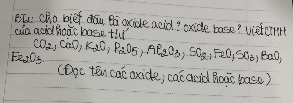 cho biết đâu là oxide acid? oxide base? Viết CTHH của acid hoặc base tương ứng
