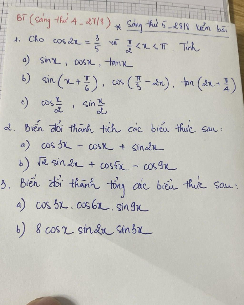 `a) cos 3x - cos x + sin 2x`