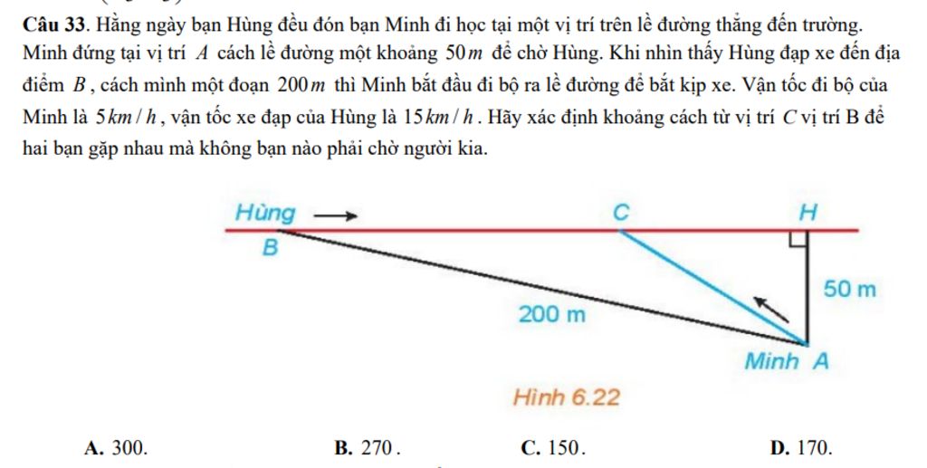 Câu 33. Hằng ngày bạn Hùng đều đón bạn Minh đi học tại một vị trí trên lề đường thẳng đến trường.