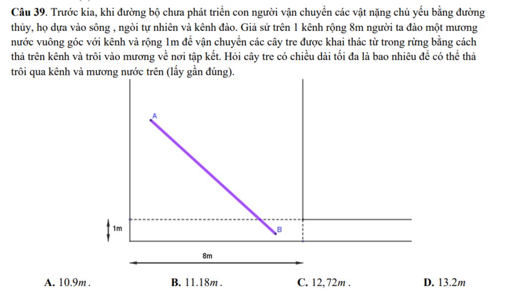 Câu 39. Trước kia, khi đường bộ chưa phát triển con người vận chuyển các vật nặng chủ yếu bằng đường