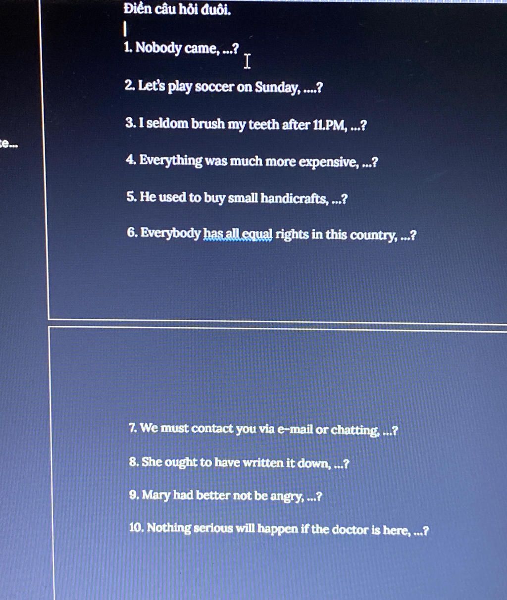 `-` Câu hỏi đuôi :