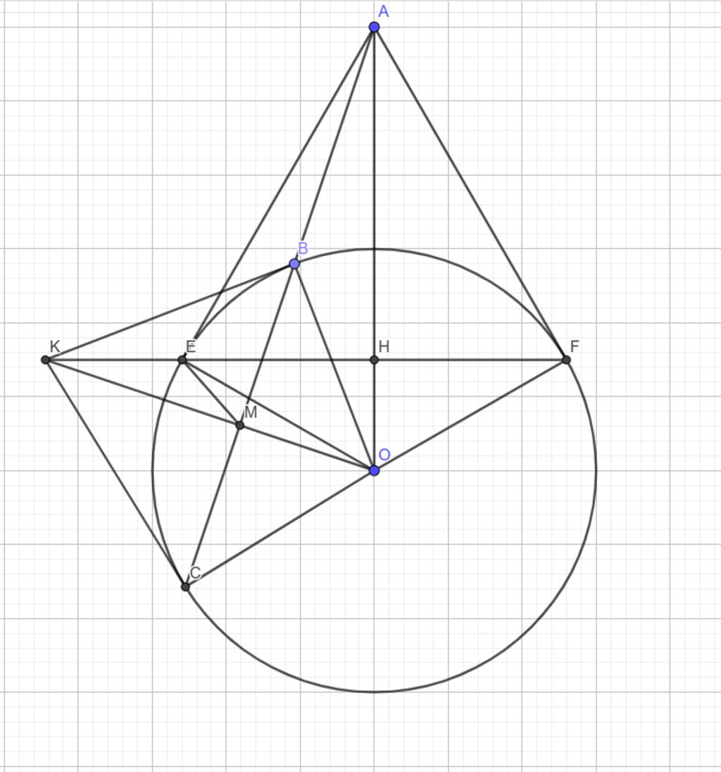 Mà $KO\perp BC, OB\perp KB\to OB^2=OM.OK\to OH.OA=OB^2=OE^2(OE=OB)$