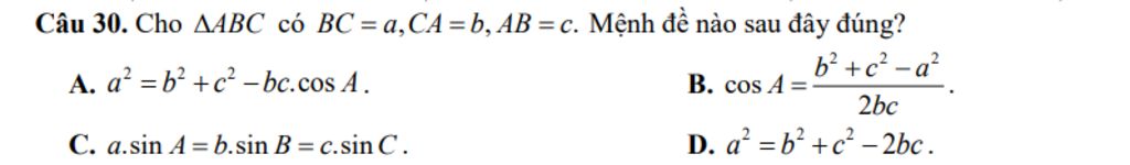 `a^2 = b^2 + c^2 - 2.b.c.CosA`