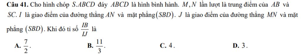 Câu 41. Cho hình chóp S.ABCD đáy ABCD là hình bình hành. M,N lần lượt là trung điểm của AB và