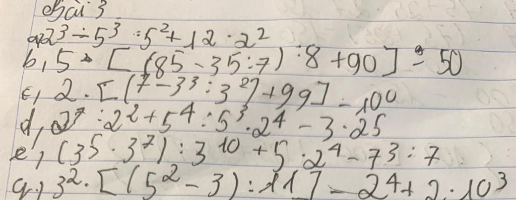 `d) 2^7 : 2^2 + 5^4 : 5^ 3 . 2^ 4- 3. 25`
