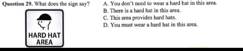 -> You must wear a hard hat in this area. (Bạn phải đội mũ cứng ở khu vực này)