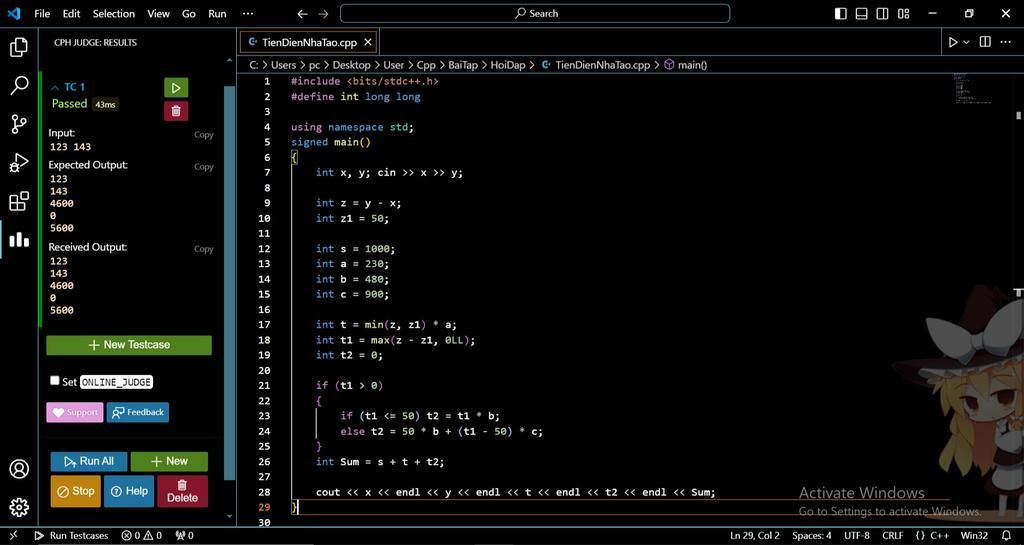 cout << cu << endl<< moi << endl<< ttdmuc << endl<< vuot << endl<< tongtien;