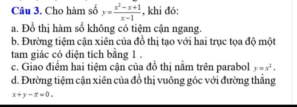 d. Đường tiệm cận xiên của đồ thị vuông góc với đườn ...