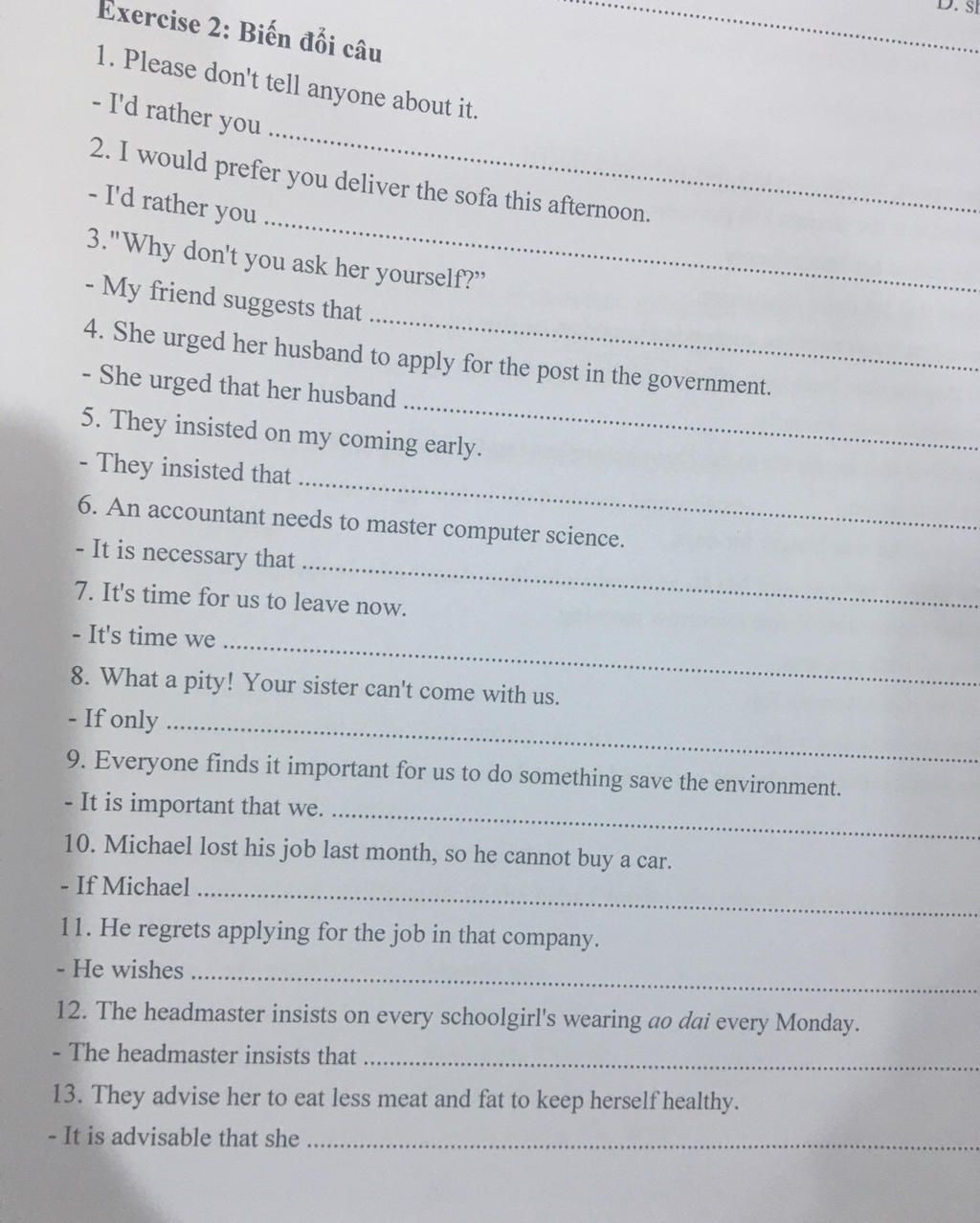 > Tương tự câu 6, sử dụng cấu trúc "It is important that + S + V".: nó quan trọng.....