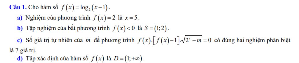 d) Tập xác định của hàm số f(x) là D =(1;+ ...