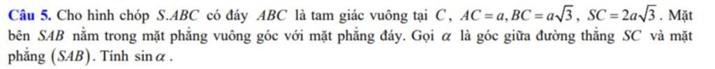 Trong (SAB): `vec(SA) = ( a , 0, -2a sqrt(3) ), vec(SB) = ( 0, a sqrt(3) , -2a sqrt(3) )`