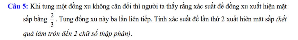 Xác suất lần $2$ xuất hiện mặt sấp là: