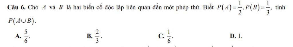 Xác suất của hai biến cố độc lập xảy ra đồng thời bằng tích xác suất của mỗi biến cố `:`