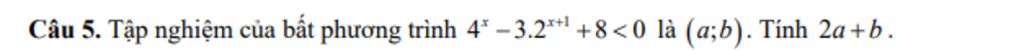 Gọi `y=2^x`, bất phương trình trở thành:` y^2−6y+8<0<=>Δ=(−6)^2−4⋅1⋅8=4`