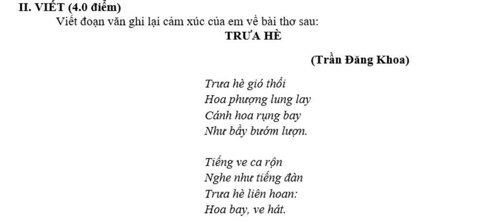 Viết đoạn văn ghi lại cảm xúc của em về bài thơ sau: