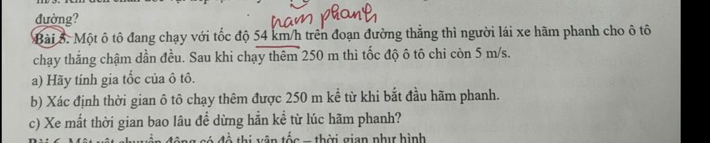 `b,` Thời gian ô tô chạy thêm được `250m` kể từ lúc hãm phanh: