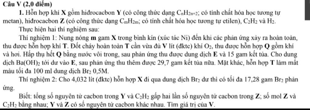 Gọi `n_Y = x ; n_Z = n_(C_2H_2) = y ; n_(H_2) = z ( mol ) ( x,y,z>0)`