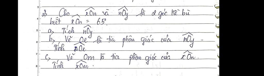 `=> ` $\widehat{nOy}$`=180^o- `$\widehat{xOn}$`=180^o-65^o=115^o `