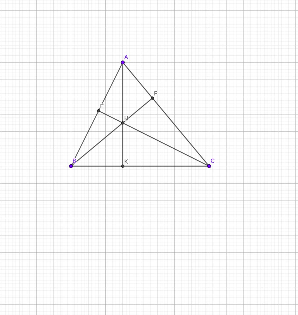Cho Δ ABC có 3 góc nhọn . Kẻ đường cao BF và CE cắt nhau tại H . Gọi K là giao của AH và BC.